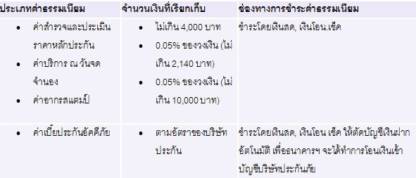 ค่าธรรมเนียมและค่าใช้จ่ายต่าง ๆ