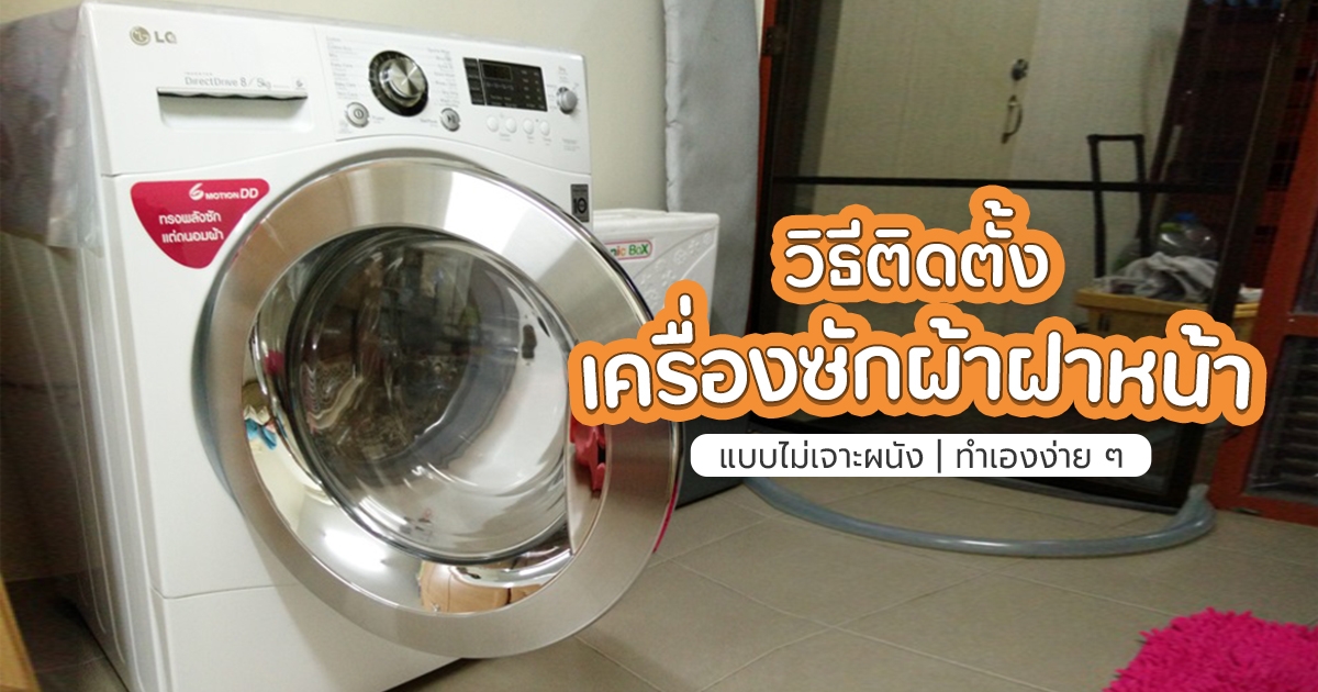 วิธีติดตั้งเครื่องซักผ้าฝาหน้าในห้องพัก แบบไม่เจาะผนัง