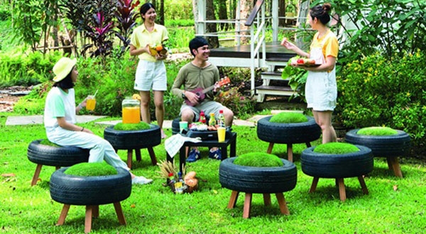 DIY คืนชีพยางรถยนต์เสื่อมสภาพ เป็นเก้าอี้นั่งชิวในสวน