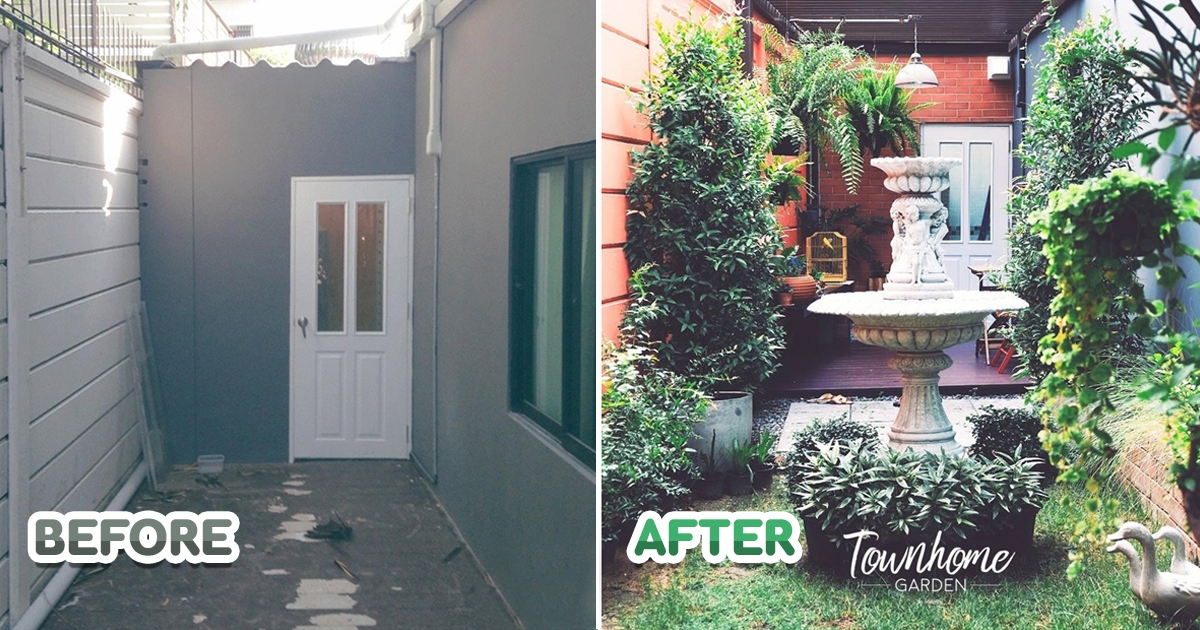 จัดสวนข้างบ้านทาวน์โฮมพื้นที่น้อย ต่อเติมระเบียงและหลังคาระแนงไว้นั่งเล่น