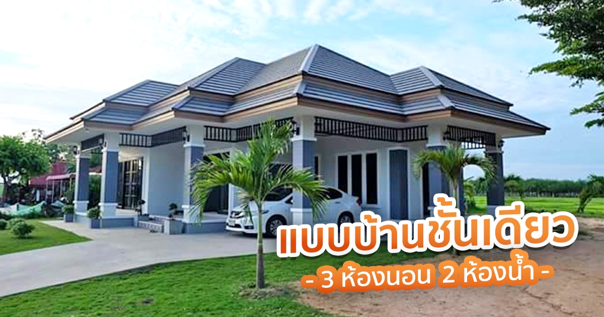 แบบบ้านชั้นเดียว 3 ห้องนอน 2 ห้องน้ำ งบก่อสร้าง 1.9 ล้าน สวยงามทั้งภายนอกและภายใน