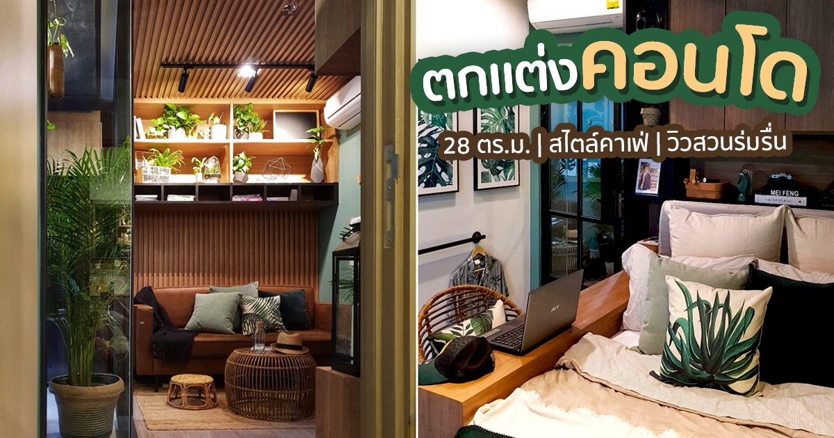 ตกแต่งคอนโดขนาดเล็ก 28 ตร.ม. ให้กลายเป็นห้องสไตล์คาเฟ่ส่วนตัว วิวสวนร่มรื่น