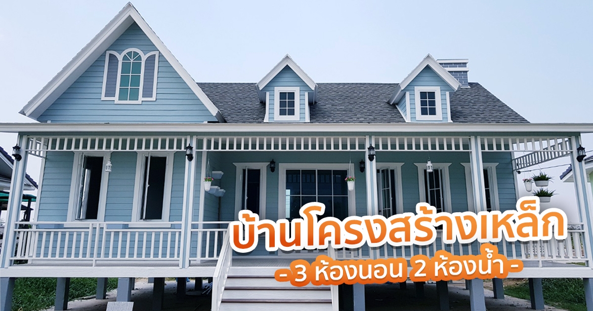 บ้านโครงสร้างเหล็ก 3 ห้องนอน 2 ห้องน้ำ บ้านสไตล์ยุโรปน่าอยู่ วิวดี หลังแค่นี้ก็แฮปปี้แล้ว