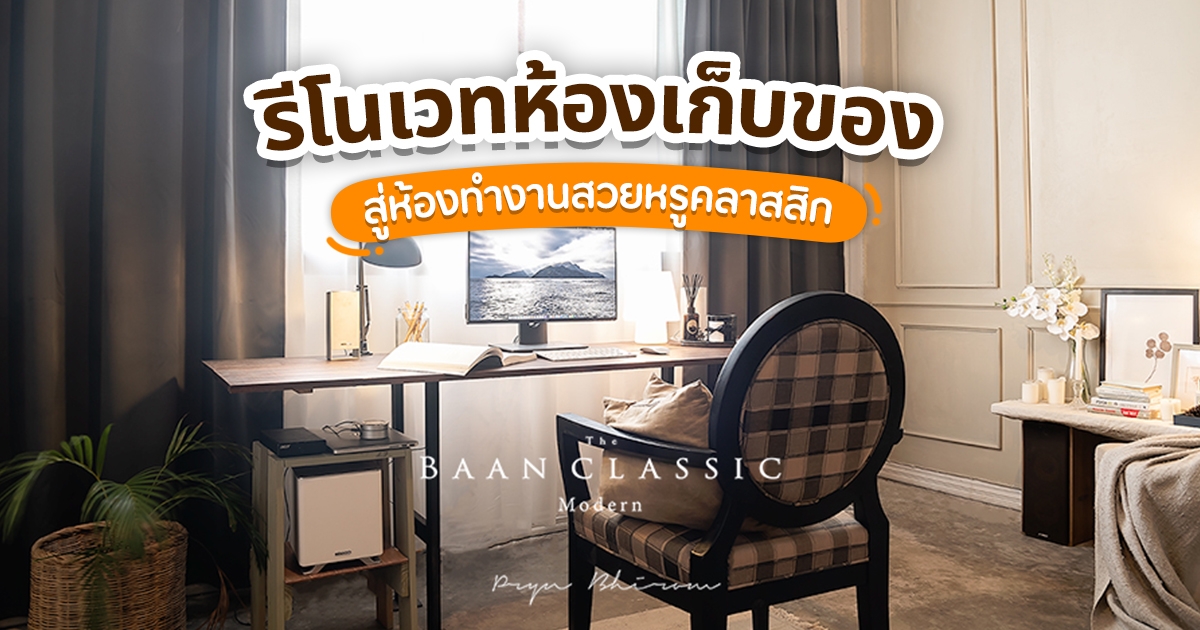 รีโนเวทห้องเก็บของเก่า สู่ห้องทำงานสไตล์ยุโรป สวยหรูคลาสสิก พร้อมห้องหนังสือในตัว