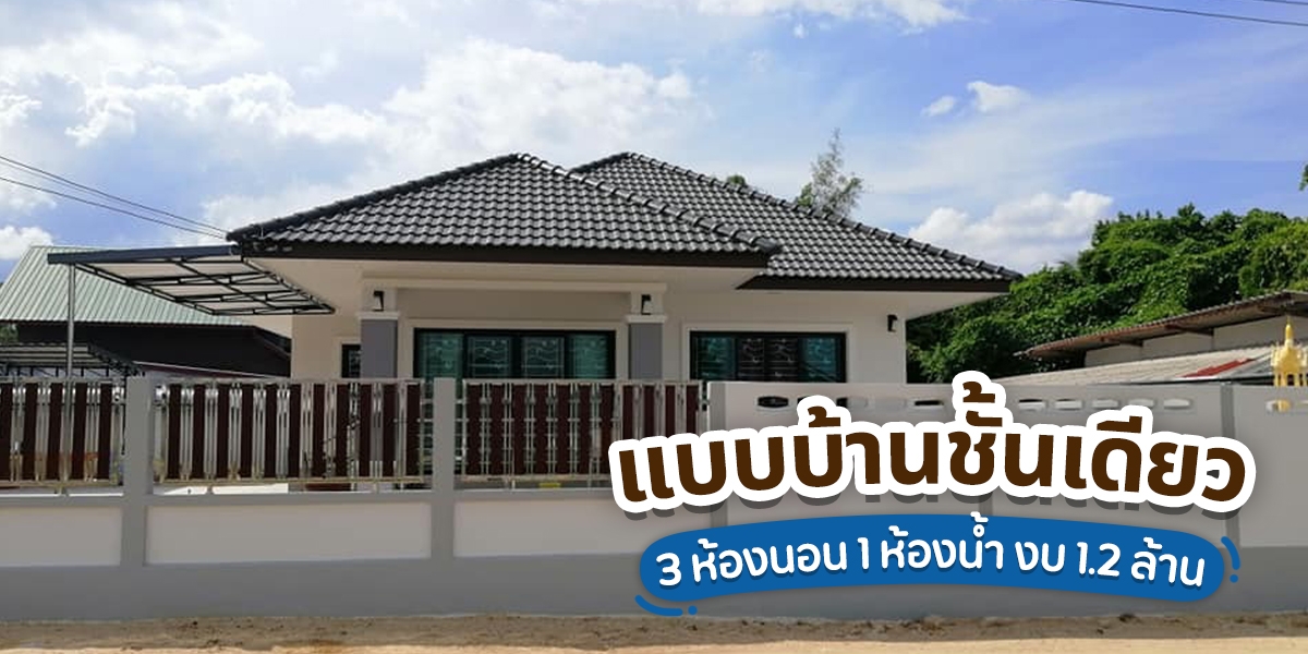 แบบบ้านชั้นเดียว 3 ห้องนอน 1 ห้องน้ำ พร้อมรั้วและประตู งบ 1.2 ล้านบาท