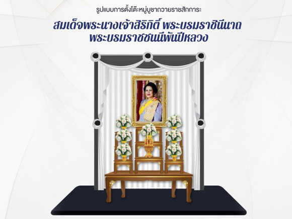 รูปแบบการตั้งโต๊ะหมู่บูชาถวายราชสักการะ สมเด็จพระพันปีหลวง