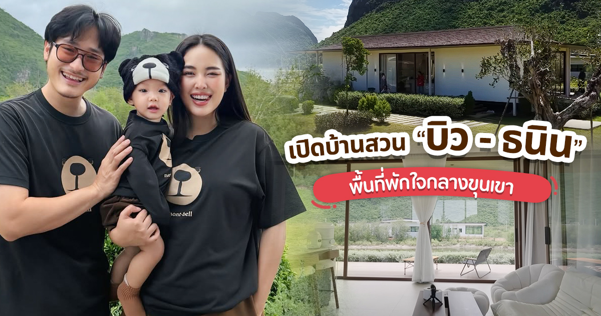 พาชมบ้านสวน บิว - ธนิน บ้านพักตากอากาศท่ามกลางธรรมชาติ ที่ออกแบบอย่างเรียบง่ายแต่แฝงด้วยความอบอุ่นและความตั้งใจของเจ้าของในทุกดีเทล พาเปิดบ้านสวนของ “บิว - ธนิน” จากรายการเคหสถานบานปลาย บ้านสวนสุดร่มรื่นที่โอบล้อมด้วยธรรมชาติและกลิ่นอายความเรียบง่าย ทุกมุมสะท้อนความตั้งใจและรสนิยมของเจ้าของ ที่อยากให้พื้นที่แห่งนี้เป็นทั้งบ้านพักใจและสวรรค์สีเขียวส่วนตัวท่ามกลางบรรยากาศอันสงบงาม ว่าแต่บรรยากาศจะเป็นอย่างไร ? ไปชมด้วยกันเลย บ้านสวนของ “บิว - ธนิน” หลังนี้ตั้งอยู่บนพื้นที่กว่า 6.3 ไร่ เกิดจากความตั้งใจอยากมีบ้านพักตากอากาศไว้ใช้ชาร์จพลังในวันหยุด จุดเริ่มต้นมาจากช่วงโควิดที่ไม่สามารถเดินทางไปต่างประเทศได้ บิวเลยได้มีโอกาสมาเที่ยวแถวสามร้อยยอด แล้วตกหลุมรักบรรยากาศของภูเขาและธรรมชาติรอบตัว จนกลายเป็นแรงบันดาลใจให้สร้างบ้านสวนหลังนี้ขึ้นมานั่นเอง ก่อนหน้านี้เคยเป็นห้องที่ทั้ง บิว - ธนิน จัดงานหมั้น มาในโทนมินิมอล เน้นการใช้พื้นที่โปร่งโล่งและสีขาวสบายตา เพิ่มความละมุนด้วยเฟอร์นิเจอร์โทนเอิร์ธอย่างโซฟาสีน้ำตาลและโต๊ะไม้ดีไซน์โค้งมน ให้ความรู้สึกเรียบง่ายแต่มีดีเทล แสงธรรมชาติจากกระจกบานใหญ่รอบห้องช่วยเปิดมุมมองสู่วิวภูเขาอย่างเต็มตา หนึ่งในมุมไฮไลต์ของบ้านสวนหลังนี้คือ “บ่อน้ำใหญ่” ที่ตั้งอยู่นอกตัวบ้าน ซึ่งบิวตั้งชื่อไว้อย่างน่ารักว่า “บ่อพระพิรุณ” เจ้าตัวเล่าว่าได้ชื่อนี้เพราะไม่ว่าจะขอฝนเมื่อไหร่ ฝนก็มักจะตกลงมาจริง ๆ โดยเฉพาะตอนงานแต่งที่อยากให้บ่อเต็มน้ำ ก็ได้ดั่งใจเหมือนมีพระพิรุณคอยอวยพรอยู่ตลอด ก่อนหน้านี้ บ้านสวนหลังนี้เจอปัญหาเล็ก ๆ ในสวน เพราะดินค่อนข้างเค็มจากพื้นที่เดิมที่เคยเป็นบ่อกุ้งเก่า ทำให้ต้นไม้บางส่วนไม่สามารถปรับตัวได้ แต่ก็ยังมีอีกหลายต้นที่เติบโตแข็งแรง ทำหน้าที่ประดับสวนให้สวยงาม พื้นที่ส่วนนี้ของบ้าน ใช้รับแขกและทำครัวไปด้วยในตัวแบบสไตล์มินิมอลร่วมสมัย เน้นเฟอร์เจอร์ลอย โอบล้อมด้วยวิวภูเขา เน้นโทนสีขาวและวัสดุไม้ ตัวบ้านออกแบบให้ใช้กระจกบานใหญ่เป็นองค์ประกอบหลัก ช่วยให้ภายในดูโปร่งโล่งและสว่างจากแสงธรรมชาติที่ส่องเข้ามาได้อย่างเต็มที่ อีกทั้งยังเปิดมุมมองสู่ทิวทัศน์ภายนอกได้แบบไร้สิ่งกั้น ทำให้ทุกมุมของบ้านเชื่อมโยงกับธรรมชาติได้อย่างลงตัว ห้องนอนถูกออกแบบให้เป็นพื้นที่พักผ่อนอย่างแท้จริง เน้นความสบายตาและการใช้งานที่คล่องตัว เหมาะกับการใช้ชีวิตแบบเรียบง่ายแต่ไม่ละเลยความอบอุ่น บ้านหลังนี้จึงเต็