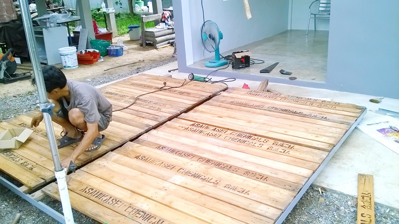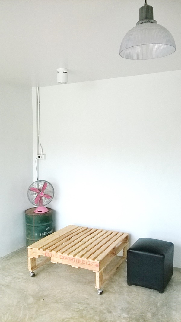 - ไม้พาเลทเหลือเอามาทำเป็นโต๊ะครับ ใส่ล้อเลื่อน ลากไปลากมาได้