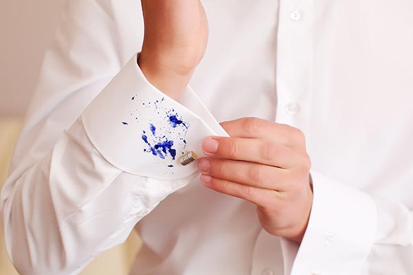 ใช้อุปกรณ์ที่สามารถหาได้ง่าย ๆ จากในห้องครัว อย่างน้ำส้มสายชูกลั่นมาราดลงบนคราบเปื้อนโดยตรง ทิ้งไว้สัก 10 นาที บีบน้ำยาล้างจานลงไปบนคราบเปื้อนสัก 2-3 หยด จากนั้นก็ใช้นิ้วมือค่อย ๆ ขจัดคราบเปื้อนเบา ๆ ทิ้งไว้อีก 5 นาที เสร็จแล้ว ก็นำไปล้างผ่านน้ำเย็น ระหว่างนั้นจะใช้สบู่มาขัดทำความสะอาดคราบเปื้อนร่วมด้วยก็ได้ แล้วจึงนำไปซักตามปกติอีกครั้ง