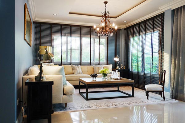 - โซนรับแขกเดิมอยากได้โซฟารูปตัวแอล (L) แต่หาถูกใจไม่ได้ เลยจัดเป็นโซฟา 3 ที่นั่งวาง 2 ตัวแทน มุมอีกด้านวางเก้าอี้แอนทีคตัวเล็ก เพื่อให้ดูสมดุล ม่านหรือมู่ลี่เต็มผนังแบบนี้ ช่วยทำให้ห้องดูกว้างขึ้นและเป็นสัดส่วนขึ้น ถ้างบถึงควรจัดม่านให้เต็มมากกว่าตัดเป็นท่อนหรือลอย ๆ จากพื้นนะครับ