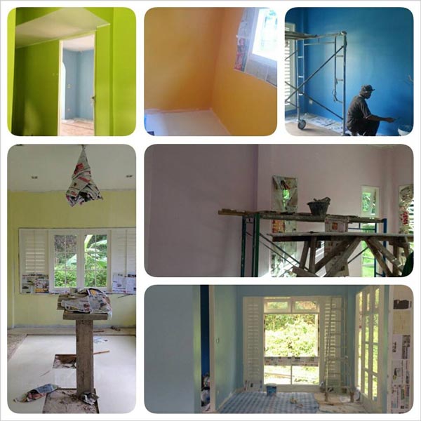 - งานฉาบปูนก็เริ่มไปด้วย เพราะช่างคนละชุดกัน ทุกอย่างเริ่มเป็นรูปเป็นร่างแล้วค่ะ จากนี้ต่อไปก็เป็นงานยิบย่อย ทั้งงานทำฝ้า งานติดตั้งหน้าต่าง-ประตู ทาสี งานกระเบื้อง เลือกสุขภัณฑ์ เดินสายไฟ เดินท่อประปา ท่อระบายน้ำ ฯลฯ