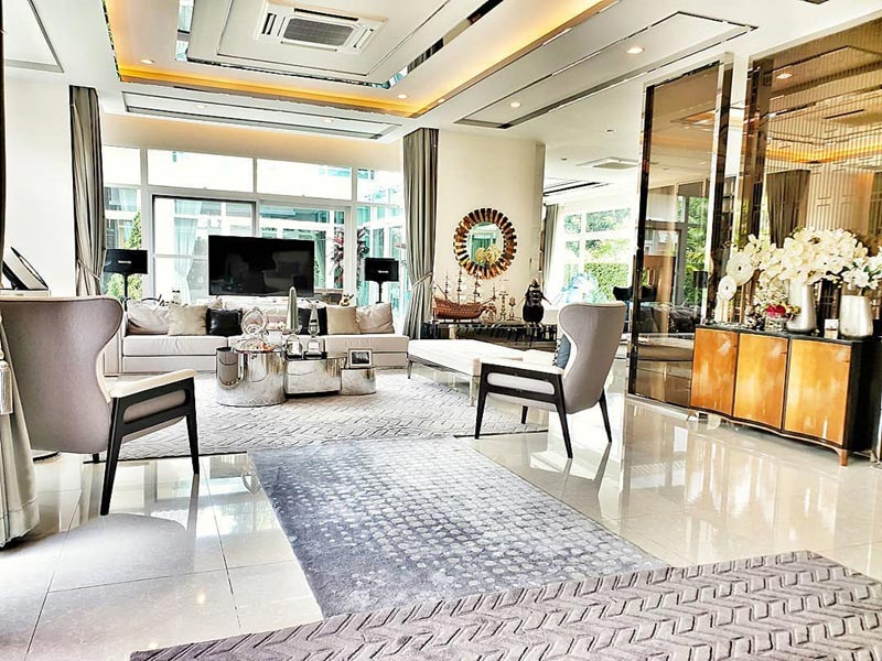 อีกหนึ่งสาวที่ทั้งสวย รวย เก่ง แถมมีรสนิยมดีมาก ๆ ต้องยกให้กับ ก้อย รัชวิน วงศ์วิริยะ หวานใจสุดน่ารักของ ตูน บอดี้สแลม ก็แหม บ้านที่เธอลงขันกับพี่น้องเพื่อซื้อให้คุณพ่อ-คุณแม่ เล่นงดงาม อลังการราวกับคฤหาสน์ขนาดนี้ แถมยังตกแต่งแบบคลีน ๆ ด้วยโทนสีขาวสไตล์โมเดิร์น คลาสสิก โดยมีพี่ชายเป็นคนออกแบบ ส่วนสาวก้อยก็เลือกของตกแต่งเองกับมือ แล้วจะไม่ให้ใครที่พบเห็นพากันชื่นชมได้อย่างไรล่ะเนอะ