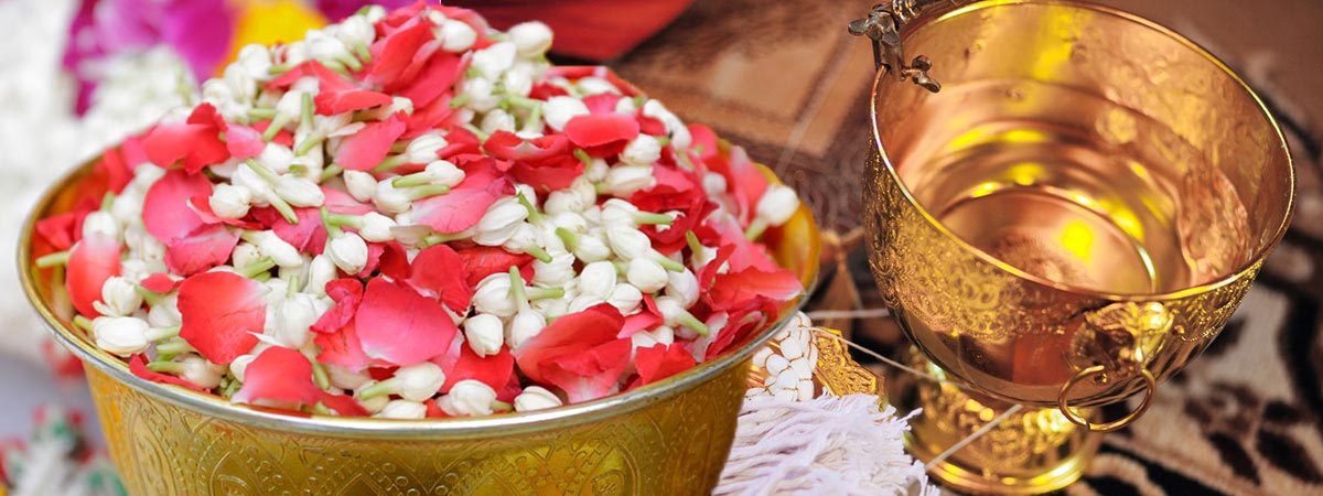 นำเอาใบมะกรูดและกำยานพันปลายเสาเอก แล้วยกเสาขึ้น พร้อมโปรยดอกไม้มงคล 7 ชนิด ได้แก่ ดอกรัก ให้รักใคร่กัน ดอกดาวเรือง ให้เจริญรุ่งเรือง ดอกบัว ให้มีคนนับถือ ดอกกุหลาบ ให้สุขสดชื่น ดอกบานไม่รู้โรย ให้มั่งมีอย่างไม่รู้โรย ดอกพุด ให้พระคุ้มครอง และดอกมะลิ ให้อยู่เย็นเป็นสุข จะทำให้ร่ำรวย มั่งมี และเป็นสุขตลอดไป