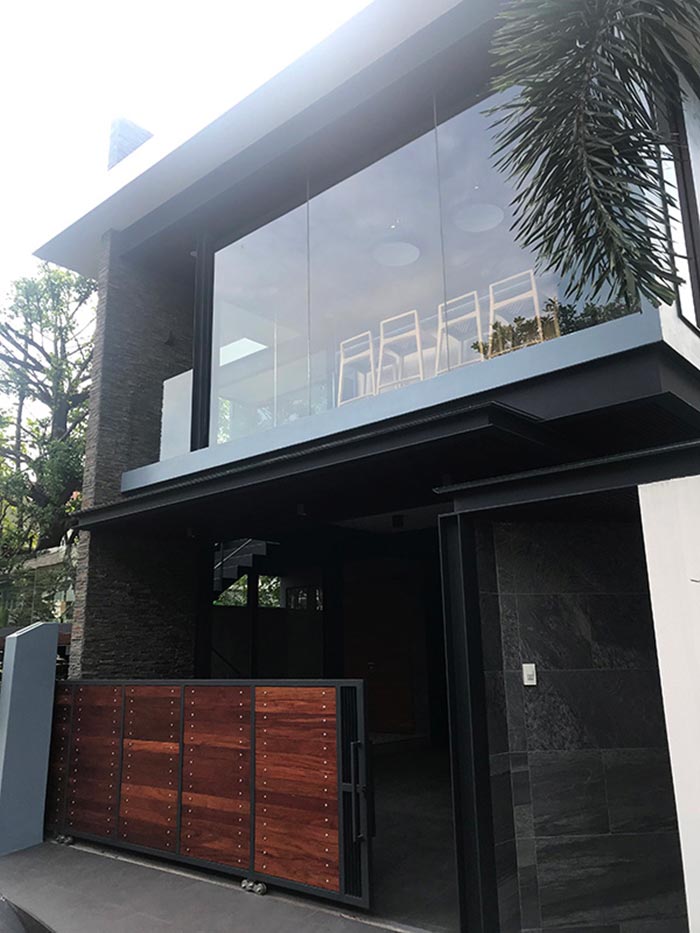 - ส่วนงานต่อไปคือการกรุไม้และรางรับกระจก ผมสเปกเป็นกระจกเทมเปอร์หนา 12 มิลลิเมตร ในส่วนที่เป็นงาน frame less เพื่อให้บ้านมีมุมมองที่กว้างและดูสบายตา