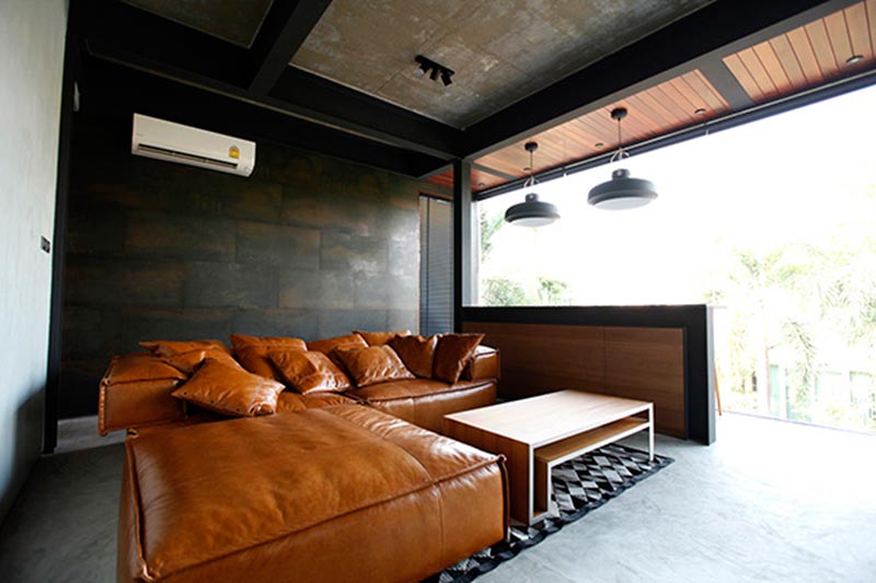 - ส่วนงานชั้น 2 ติดกระเบื้องลายสนิม ห้องนี้อยากเอาไว้เป็นห้องนั่งเล่น Style Industrial หน่อย ๆ