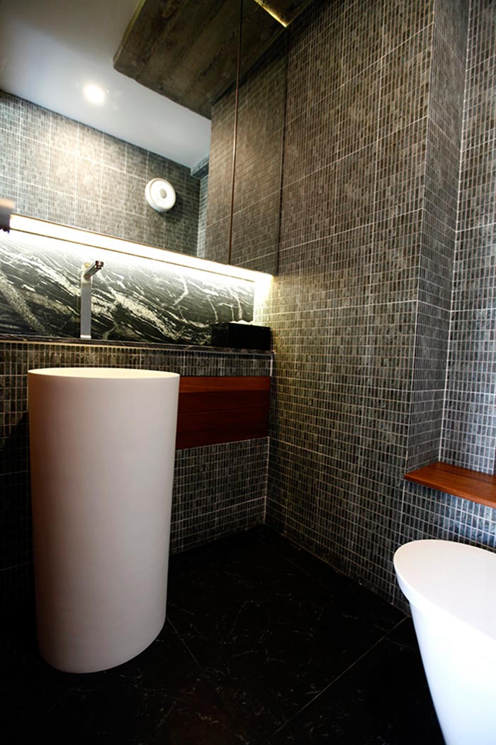 - ไหน ๆ เลยมาขนาดนี้แล้ว เลยทุบทำลายล้างห้องน้ำกันต่อ แต่เดิมสัดส่วนห้องน้ำส่วนห้องนอนใหญ่พื้นที่ค่อนข้างแคบ จึงปรับผนังและส่วนการใช้งานใหม่