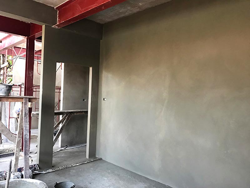 - โครงสร้างหลักเริ่มเสร็จก็ถึงส่วนงานเก็บฉาบเรียบครับ