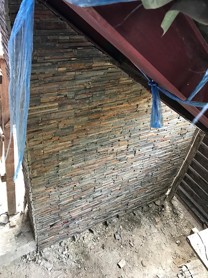- ส่วนของผนังสูงใช้หินโบราณตัดมาตกแต่ง