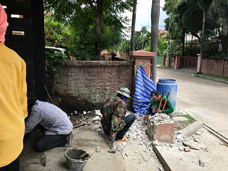 - ข้างบ้านทำการแก้ปัญหาเรื่องดินทรุดด้วยการนำแผ่นปูนสำเร็จมากั้นเป็นแนวเขื่อนรอบบ้าน เพื่อกันไม่ให้ดินไหลลงใต้คาน