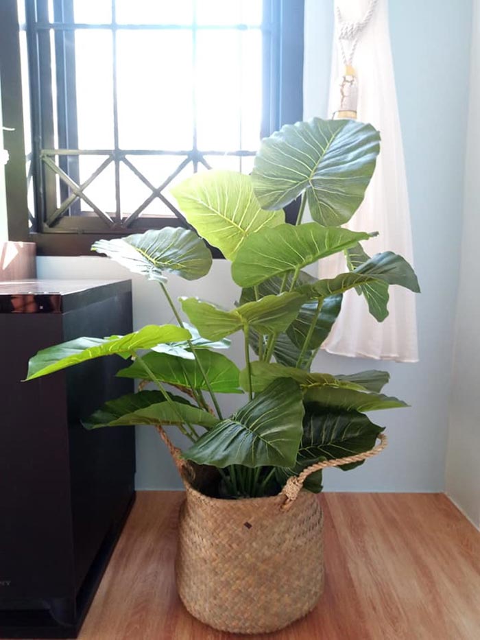 - ภายในบ้านอีกฝั่ง เน้นตกแต่งแบบอบอุ่นและเรียบง่าย โดดเด่นด้วยผนังอิฐช่องลมและผนังสีฟ้าสวย อีกทั้งยังมีต้นไม้สีเขียวช่วยเพิ่มความเป็นธรรมชาติด้วย