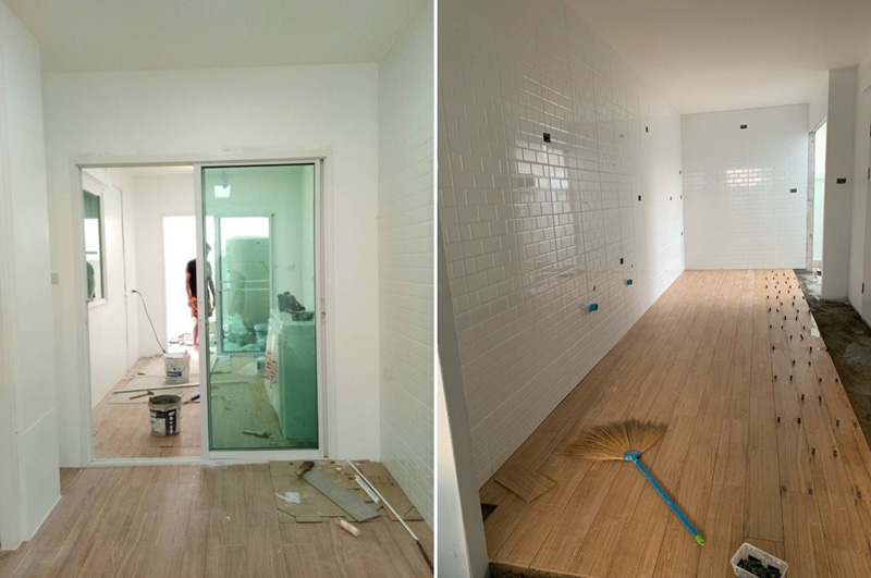แต่ไหน ๆ เราก็กะว่าจะอยู่ที่นี่ยาว ๆ เลยคิดจะต่อเติมห้องครัวกับห้องซักผ้าเพิ่ม เพราะด้านหลังมีพื้นที่เหลือพอประมาณ 11 เมตร ลึก 2.8 เมตร ต่อเติมก่อนเข้าอยู่จะได้ไม่ต้องมามีปัญหารบกวนทั้งเรื่องเสียง ฝุ่น ตอนที่ต่อเติมเพื่อนบ้านมีย้ายมาแค่ 1 หลัง เพราะฉะนั้นต่อเติมตอนนี้จะได้ไม่รบกวนคนอื่นมาก ใจจริงเราอยากต่อเติมกับเจ้านึงนั่งดูยูทูปเค้าทุกวันตั้งแต่ปีที่แล้ว แล้วผลงานเขาออกมาโอเคมากเลย แล้วตอนนั้นราคาก็รับ พอถามราคาตอนนี้คือแบบเพิ่มขึ้นจากปีที่แล้ว 7-8 หมื่นเลย เลยหาช่างใหม่สรุปคนข้างบ้านที่มีอยู่หลังเดียวนั่นล่ะแนะนำมา ตอนนั้นไม่รู้จักทั้งคนข้างบ้านทั้งช่าง แต่ก็ลองดูเป็นไงเป็นกัน