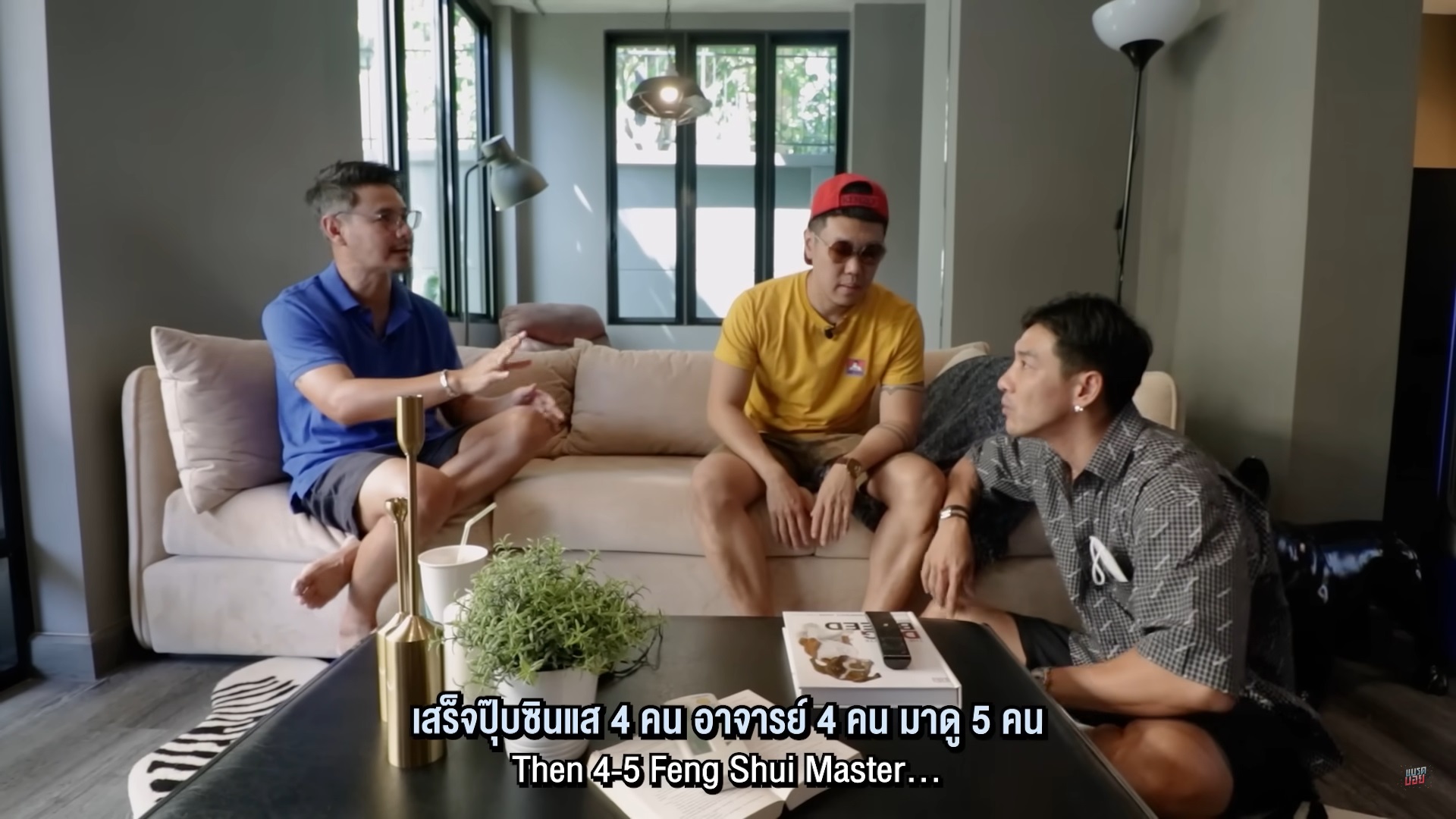 ส่วนเรื่องฮวงจุ้ย ก็มีการคุยกับซินแสหลายคน คนแรกบอกไม่ต้องแก้อะไร ส่วนอีกคนบอกประมาณว่า จะเรียกให้ไปดูทำใจได้หรือเปล่า ถ้าต้องทุบ ต้องรื้อ หรือต้องถม ซึ่งเวฟก็คิดว่าถ้าทำแล้วมันดีก็เอา ซินแสก็ให้แก้บ่อปลาจากทรงสี่เหลี่ยมเป็นหกเหลี่ยม เพราะสี่เหลี่ยมหมายถึงโลงศพ