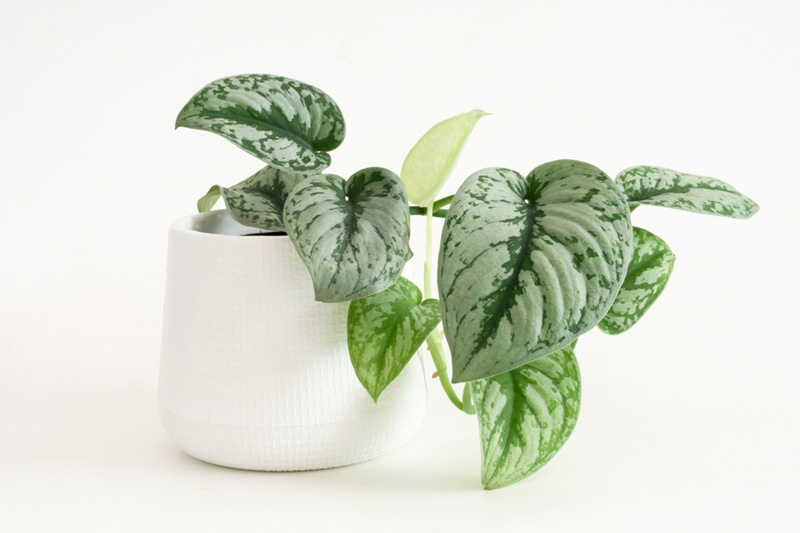 ต้นพลูหัวใจแนบ (Satin Pothos) หรือต้นแนบอุราใบหัวใจ มีชื่อวิทยาศาสตร์ว่า Scindapsus pictus Hassk. จัดอยู่ในวงศ์ Araceae เป็นไม้เลื้อยขนาดเล็ก ความยาวต้นอยู่ที่ประมาณ 1-2 เมตร ลำต้นกลมสีเขียว มีรากออกมาตามข้อ ใบรูปหัวใจ ความกว้างประมาณ 3-5 เซนติเมตร แผ่นใบหนาสีเขียวมีลายสีเงินเทา นิยมขยายพันธุ์ด้วยการปักชำยอด เหมาะสำหรับปลูกในดินร่วนระบายน้ำได้ดี ชอบความชื้นและแสงแดดปานกลาง รดน้ำวันละ 1-2 ครั้ง พอให้ดินชุ่มแต่ไม่แฉะจนเกินไป
