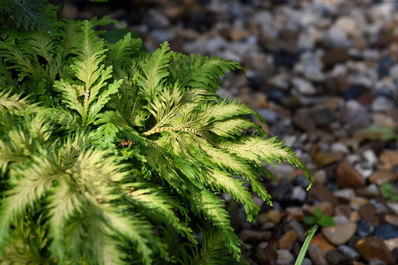 เฟิร์นผักชี ลักษณะลำต้นเป็นเหง้าทอดยาว ใบประกอบแบบขนนก 3 ชั้น ก้านใบยาว 3-5 เซนติเมตร แผ่ออกเป็นครีบตลอดก้านใบ เส้นใบแตกปลายเปิด ด้านบนเป็นร่อง หน้าตาคล้ายผักชี ชอบความชื้นปานกลางถึงชื้นมาก และชอบแสงแดดรำไร