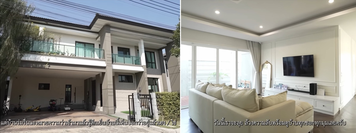 ตัวบ้านแยกฝั่งตามหลักฮวงจุ้ย ฝั่งขวาเป็นสัญลักษณ์ของปุ้มปุ้ย และฝั่งซ้ายเป็นสัญลักษณ์ของกวินท์ นำต้นล่ำซำมาปลูกเอาไว้ เชื่อว่าหากหมั่นรดน้ำต้นไม้และดูแลให้สวยงามก็จะทำให้ชีวิตดีขึ้น