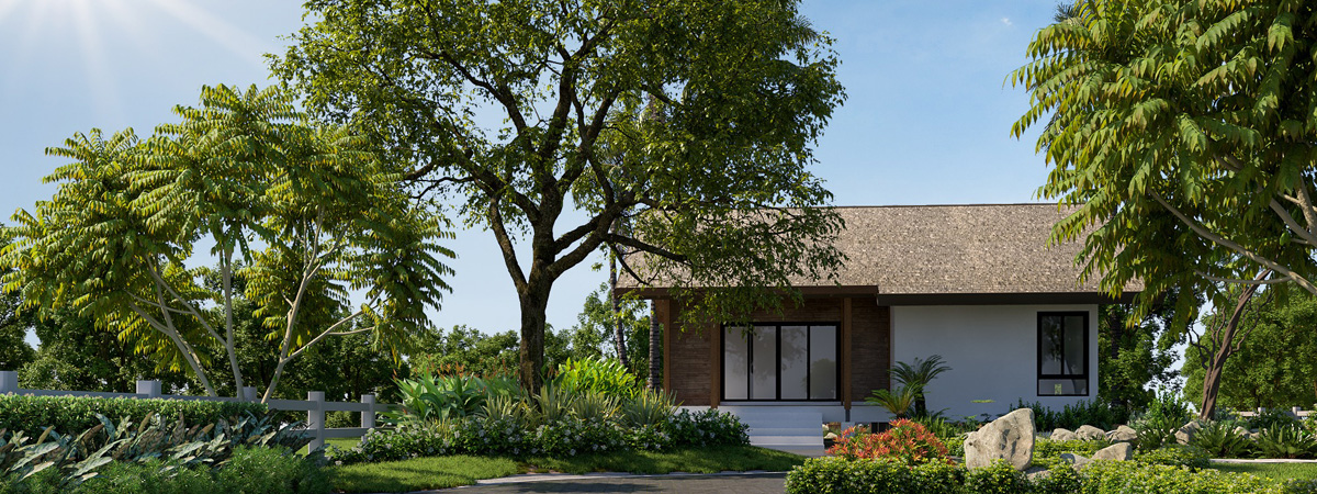 แบบบ้านสวนเกษตร ผสานชีวิตเรียบง่ายกับธรรมชาติอย่างลงตัว ตัวบ้านขนาดกะทัดรัด มาพร้อมลานกิจกรรมครอบครัว เปิดมุมมองสู่วิวสวนแสนสงบ
