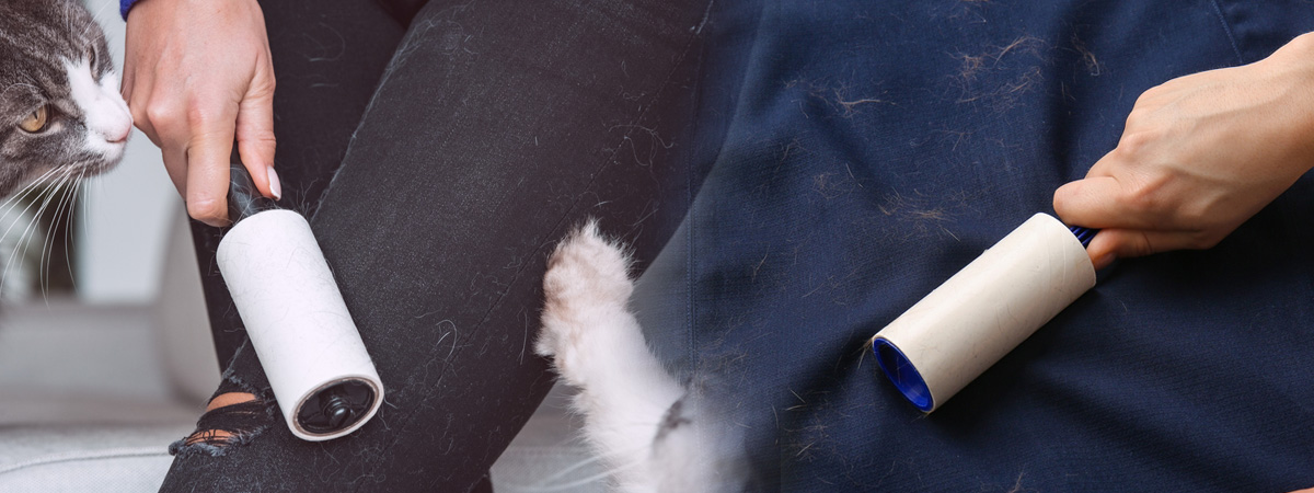 ก่อนใส่ผ้าลงเครื่องซัก ให้ใช้ลูกกลิ้งแผ่นกาวกลิ้งบนผ้าที่มีขนสัตว์ติดอยู่ โดยเฉพาะผ้าที่เป็นผ้าถักหรือผ้าที่มีผิวสัมผัสหยาบ ๆ เพราะขนจะฝังแน่นอยู่ในเส้นใย หากไม่มีลูกกลิ้งก็อาจใช้เทปกาวติดแล้วดึงออกเพื่อจับขนก็ได้เช่นกัน โดยแนะนำให้ทำในบริเวณที่มีแสงสว่างเพียงพอ เพื่อที่จะได้มองเห็นขนชัด ๆ