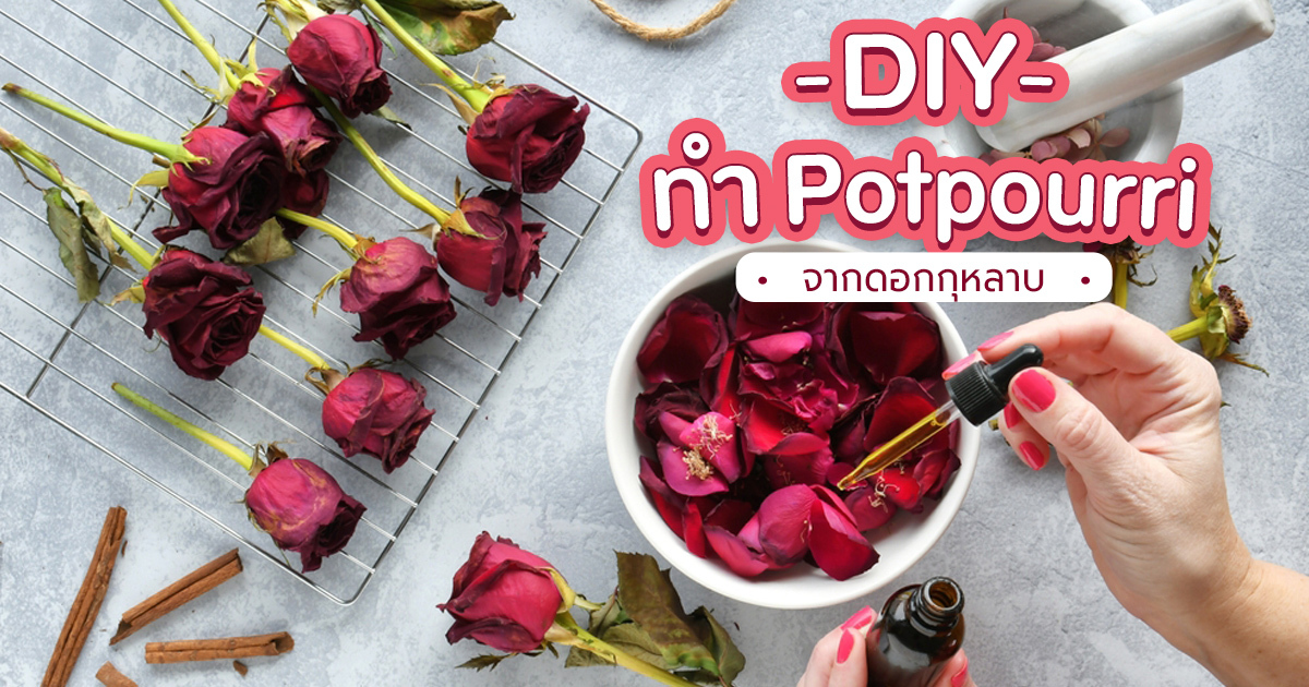 DIY Potpourri จากดอกกุหลาบไม่เพียงเติมกลิ่นหอมให้บ้าน แต่ยังช่วยเก็บรักษาความทรงจำจากช่วงเวลาพิเศษให้อยู่กับเราได้นานขึ้น ลองปรับกลิ่นและส่วนผสมตามสไตล์ที่ชอบ แล้วเปลี่ยนดอกไม้ธรรมดาให้กลายเป็นของหอมที่มีความหมายในแบบของคุณเอง