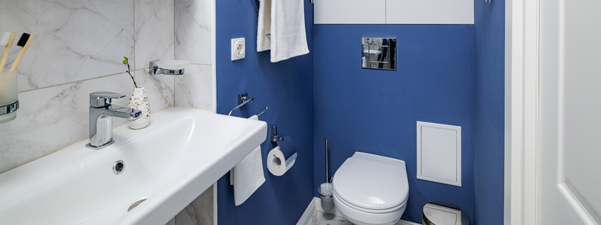 สุขภัณฑ์แบบติดผนังหรือแบบลอยตัวช่วยให้มองเห็นพื้นมากขึ้น ส่งผลให้ห้องดูไม่แน่นและทำความสะอาดง่ายกว่าเดิม เหมาะกับห้องน้ำขนาดเล็กที่ต้องการความโปร่งตา หากพื้นที่จำกัดมาก อ่างล้างหน้าแบบขาตั้งหรือแบบมินิมอลก็เป็นอีกตัวเลือกที่ช่วยประหยัดพื้นที่โดยยังคงใช้งานได้ครบ