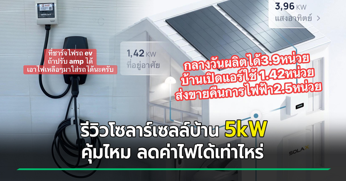 แชร์ประสบการณ์ติดโซลาร์เซลล์ที่บ้าน หลังใช้งานจริง ค่าไฟลดลง แถมยังมีไฟเหลือชาร์จรถ EV ได้แบบสบาย ๆ ลองมาดูว่าแบบไหนคุ้มและเหมาะกับบ้านเราจริง ๆ