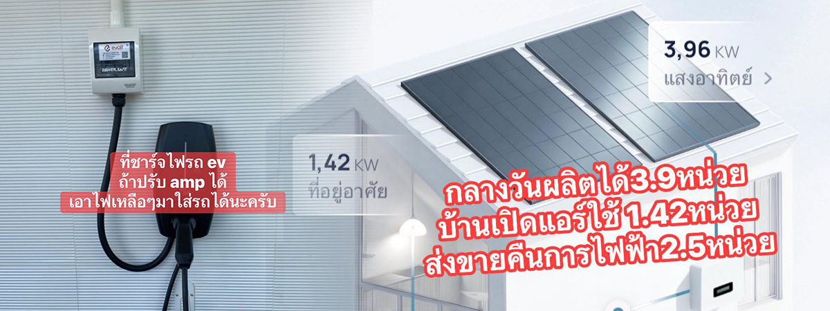 ที่น่าสนใจคือ ในช่วงกลางวันที่ผลิตไฟได้เหลือจากการใช้งานในบ้าน ยังสามารถนำไปชาร์จรถ EV ได้อีกด้วย กลายเป็นการใช้พลังงานได้คุ้มค่ายิ่งขึ้น ปัจจุบันค่าใช้จ่ายด้านพลังงานของบ้านนี้อยู่ที่ค่าไฟประมาณหลักพันต้น ๆ ต่อเดือน และค่าชาร์จรถรวม 3 คัน ราว 2,000 บาท ถือว่าช่วยลดภาระค่าใช้จ่ายลงได้อย่างชัดเจน