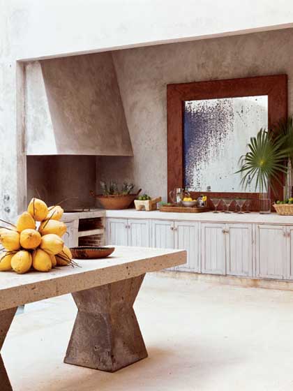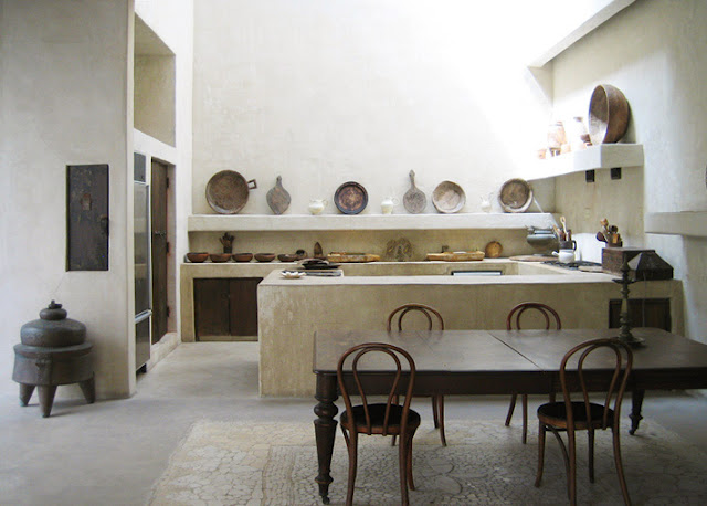 ตัวปูนเปลือยดูดิบ เข้ากับของตกแต่งที่เป็นเครื่องครัวเก่า ๆ ได้เป็นอย่างดี เห็นครัวแบบนี้แล้วแอบเดาว่าเจ้าของบ้านชอบทำอาหารแบบพื้นเมืองนะ ;)