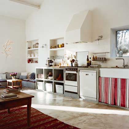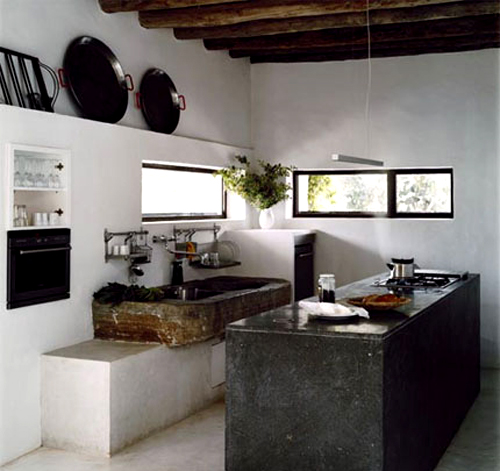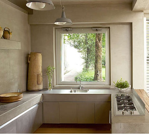 7. ครัวปูนเปลือยรูปตัวไอในพื้นที่แคบ ๆ