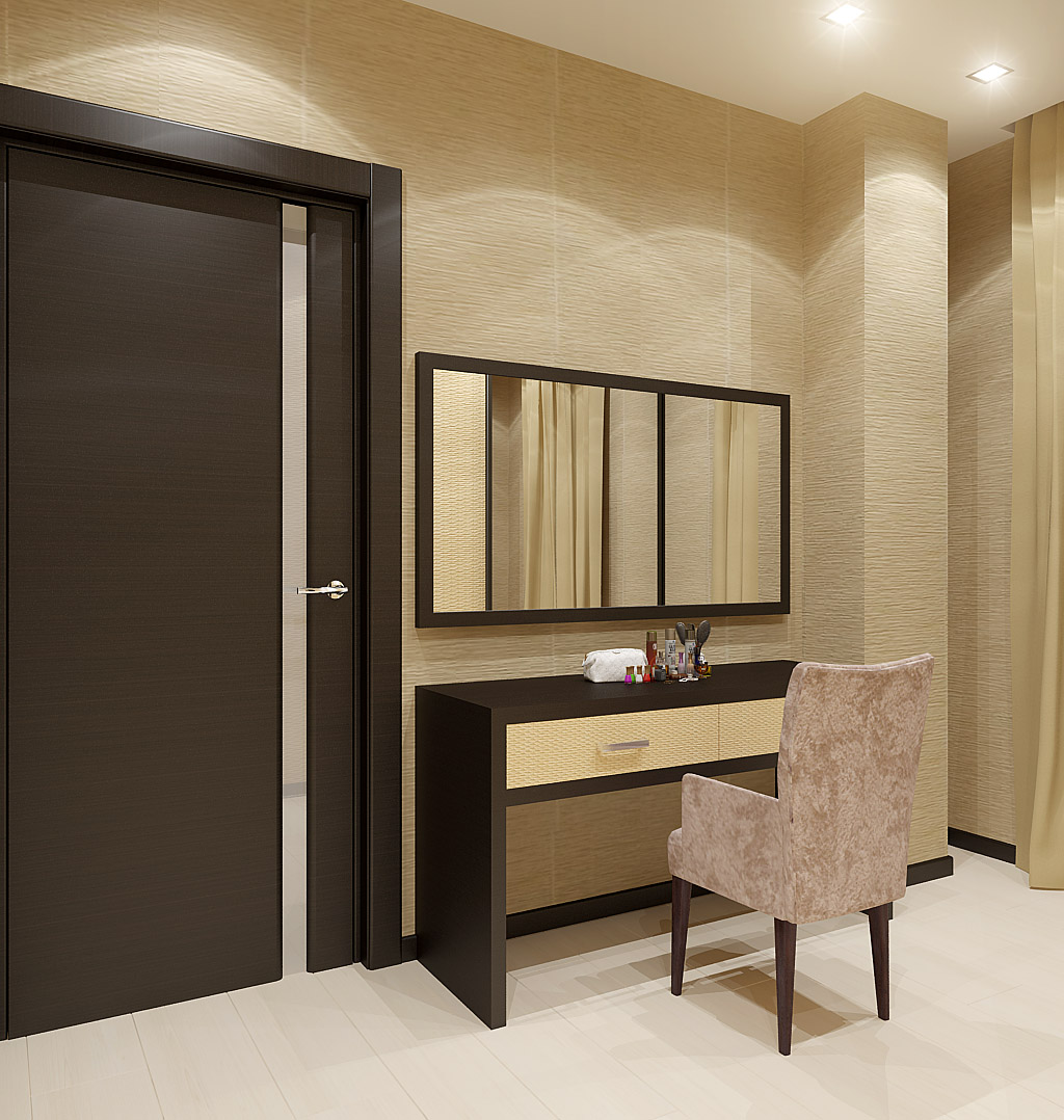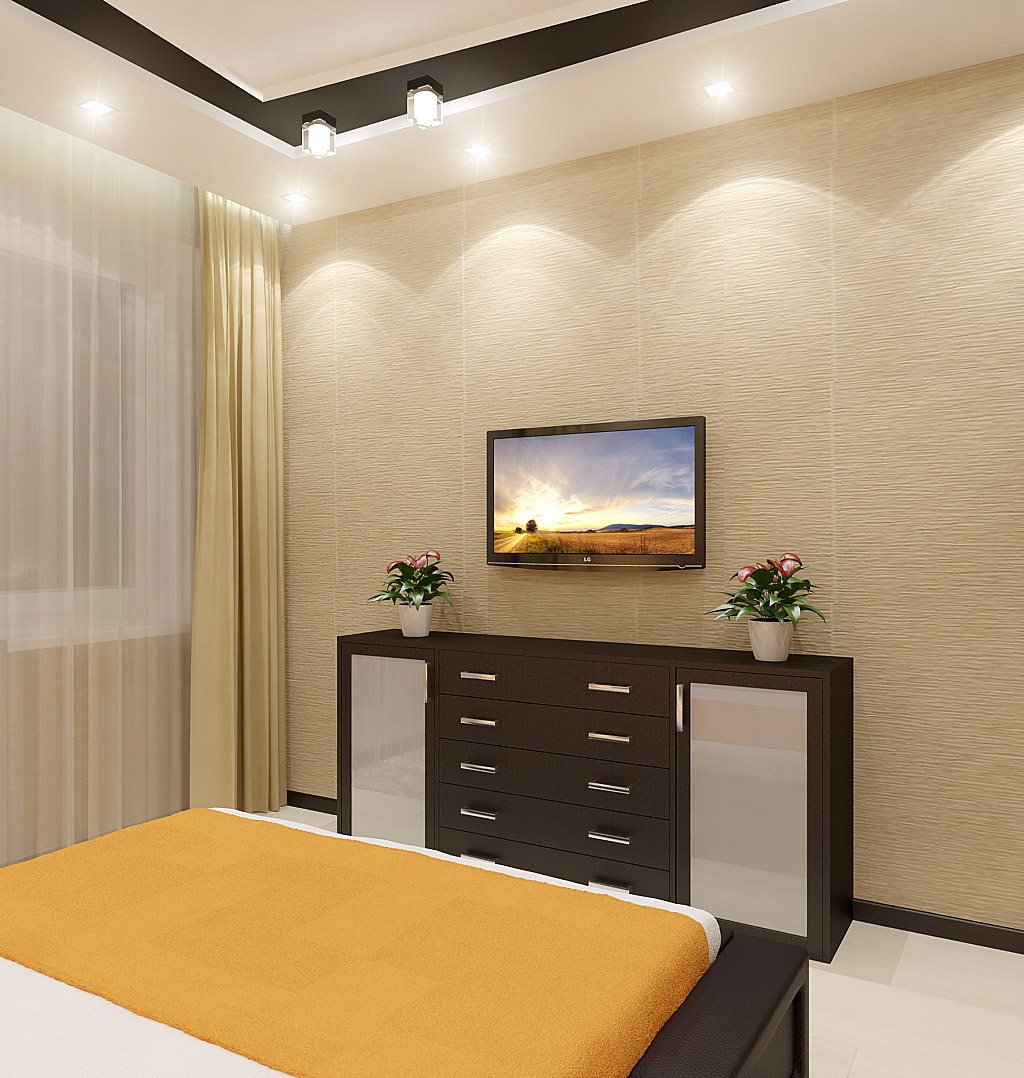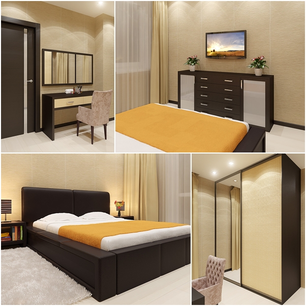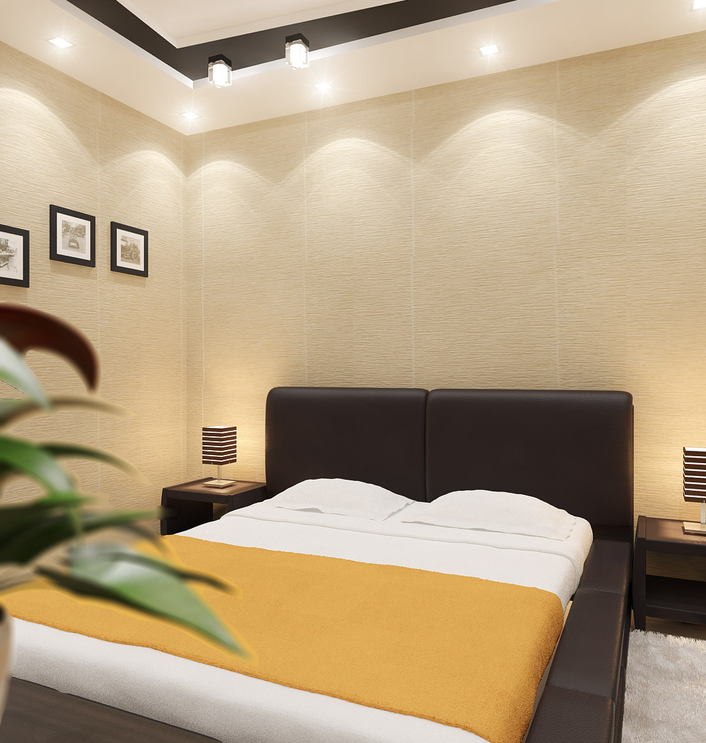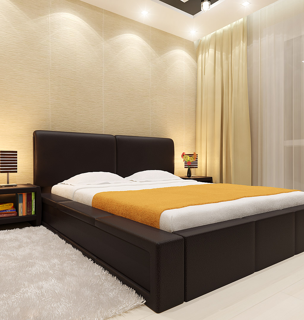 ห้องนอนห้องนี้คุมธีมด้วยผนังสีครีม และใช้สีน้ำตาลเข้มมาตัดให้ดูมีมิติ ตกแต่งเพดานด้วยฝ้าหลุมตัดขอบสีน้ำตาลเข้ม และโดดเด่นด้วยเตียงนอนหนังสีเดียวกัน ตู้เสื้อผ้าเลือกใช้ลวดลายและสีครีมเหมือนผนัง ปูพรมสีขาวขนฟูเอาไว้ข้างเตียงให้สัมผัสนุ่มสบาย เฟอร์นิเจอร์ไม้ชิ้นอื่น ๆ ก็เลือกใช้สีน้ำตาลเข้มทั้งหมดจะได้ดูกลมกลืนกัน เพิ่มความสว่างให้ห้องด้วยแสงจากหลอดไฟสวย ๆ ทำให้ดูโปร่งสบาย ไม่รู้สึกอึดอัด ว่าแล้วเราไปดูตัวอย่างห้องนอนสีครีมห้องนี้กันเลยดีกว่าจ้า ..