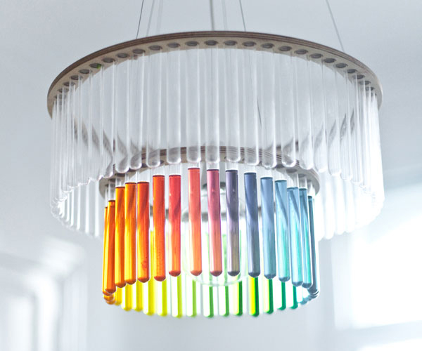 สำหรับวงการวิทยาศาสตร์อาจจะคุ้นเคยกับการใช้หลอดทดลองเป็นอย่างดี แต่สำหรับแวดวงของการตกแต่งบ้านออกจจะแปลกไปสักหน่อย เพราะดูเหมือนว่าประโยชน์ของหลอดทดลองไม่ค่อยสอดคล้องกับการใช้งานสักเท่าไหร่ แต่ทั้งนี้ใช่ว่าจะเป็นไปไม่ได้เลย เพราะนักออกแบบ Pani Jurek จากเว็บไซต์ gangdesign.pl ได้ผสมผสานทั้งสองอย่างเข้าด้วยกัน แถมยังใส่จินตนาการลงไปอีกนิด จนกลายเป็นแชนเดอเลียร์สวย ๆ เอาไว้ใช้สำหรับตกแต่งบ้านแบบเก๋ ๆ